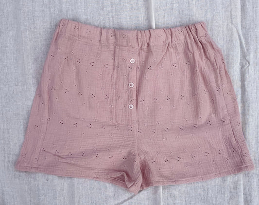 caleçon en double gaze vieux rose pastel brodé