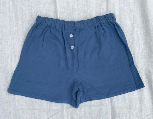 Caleçon en double gaze gris clair/dentelle jaune vif