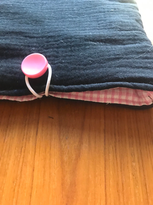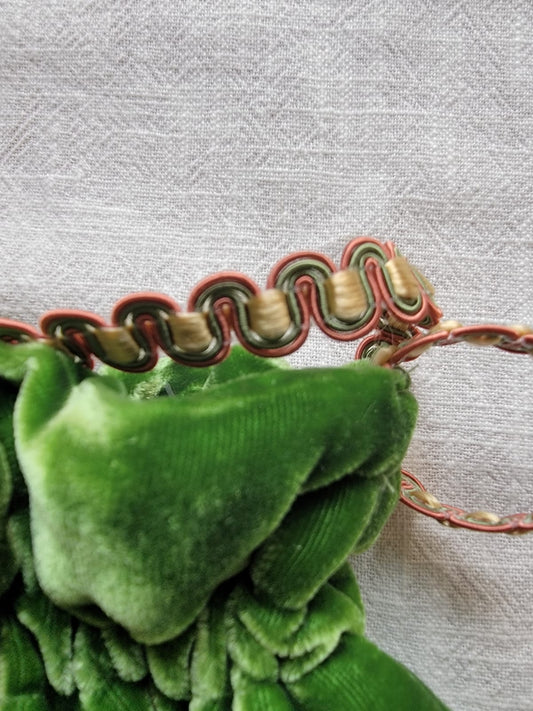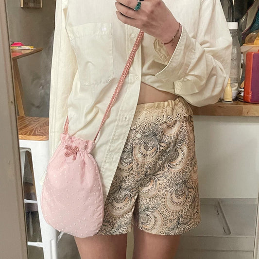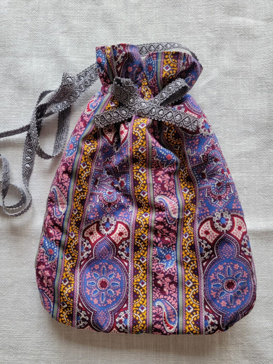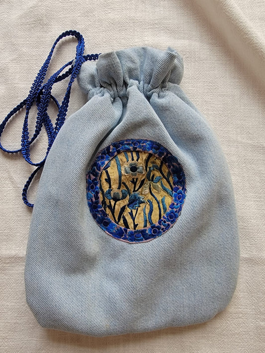 Bourse en jean upcyclé clair et médaillon ancien brodé