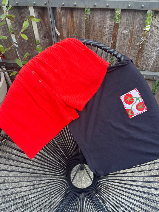 Duo T-shirt Tomates/Caleçon double-gaze rouge-orangé
